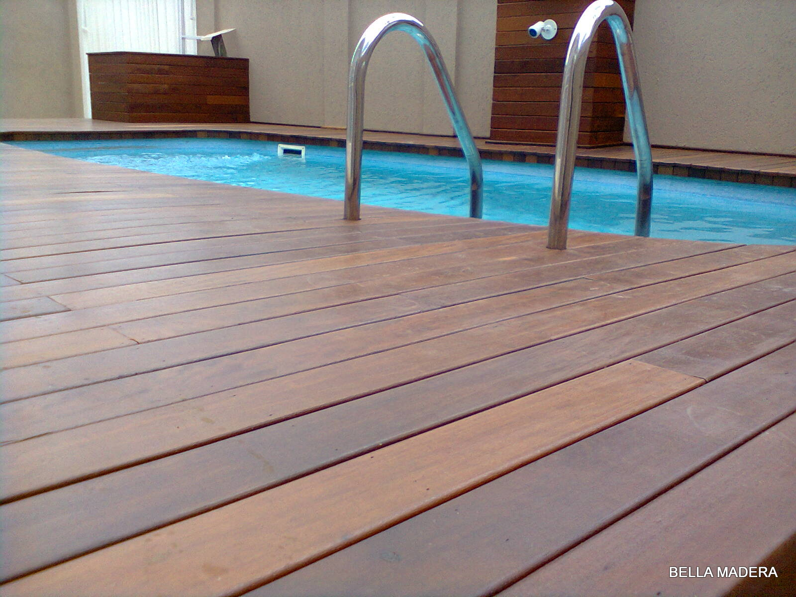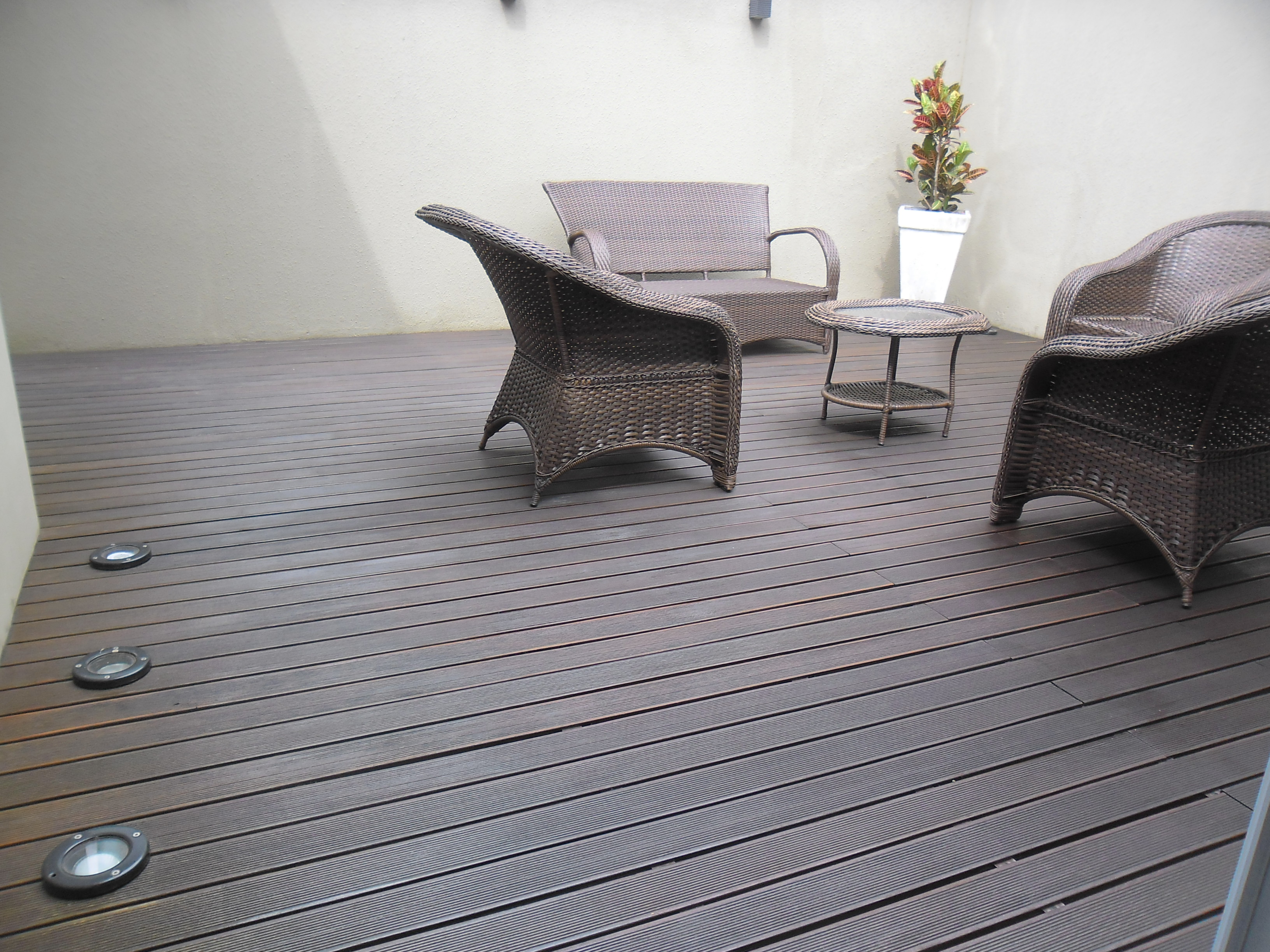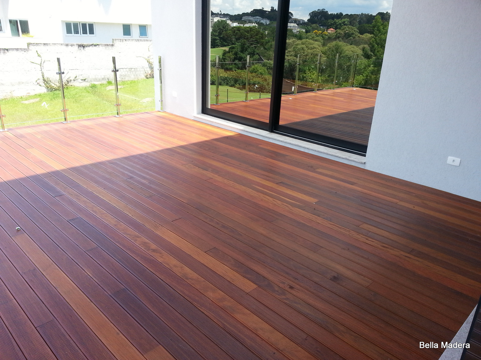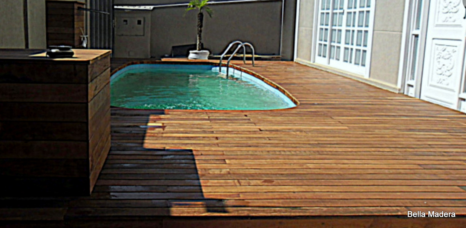 Deck de madeira maciça ipê com ranhuras anti derrapantes